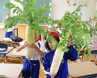 2年生の子ども達が学級園で丹精込めて育てた冬野菜が収穫の時期を迎えました。巨大な大根、にんじん、キャベツ、ひともじ・・・。どれも立派に育っていました。今朝も始業前に朝霜に負けず大きな大きな大根を2本も抜いている子がいました。採れたて野菜を使った「野菜パーティ」が楽しみのようです。