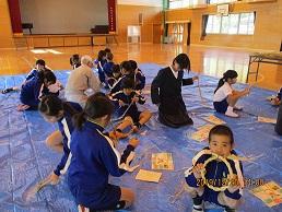 最初にしめ縄の意味についてのお話があり、続いて技を披露してくださいました。子供達も縄のない方を教えていただき「マイしめ縄」を作りました。自宅に持ち帰り家族に披露するのを楽しみにしていました。日本の伝統的行事や風習を継承していきたいものですね。