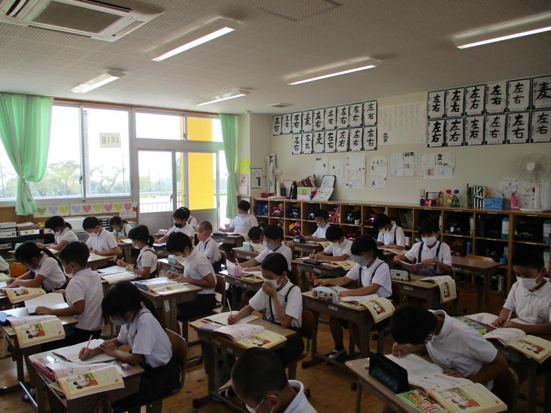 今日から学校は2学期を迎えました。久しぶりに朝から子どもたちの元気な声が響いています。密を避けるため、教室で放送を聞くかたちで始業式を行いました。子どもたちを代表して2年の松本笑那さん、4年の竹下結菜さん、6年の松本結貴さんがそれぞれ2学期の抱負を語ってくれました。2学期も新型コロナウィルス感染拡大防止対策に努めながら、子どもたちの成長を見守っていきたいと思います。2学期もよろしくお願いします。