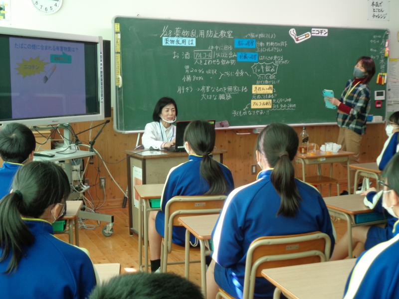 1月28日(木)、6年生を対象に、薬物乱用防止教室が開かれました。講師は学校薬剤師の木下先生です。薬物乱用と聞くと繰り返し薬物を使用するイメージですが、1回の使用でも薬物乱用です。最近では薬物乱用の低年齢化も大きな問題となっています。今回は酒とタバコの害について詳しく学び、もし誘われたとしてもきっぱりと断る練習もしました。これからの自分についてしっかり考える機会になったと思います。