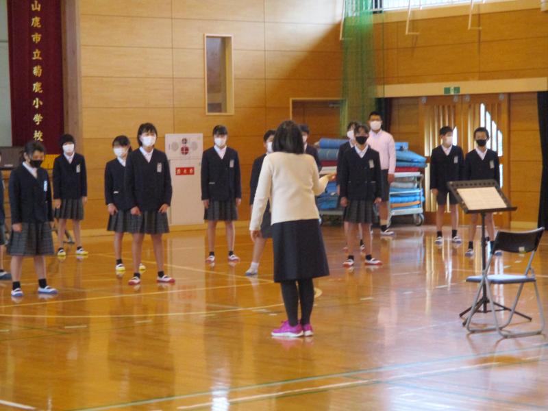 2月5日(金)、山鹿小学校の村木指導教諭をお招きし、卒業式に向けた6年生の合唱指導をしていただきました。村木指導教諭は、全国レベルの山鹿小の合唱を指導しておられる先生です。そんな先生から指導していただけるということで、6年生も担任の先生も少し緊張していましたが、さすが村木指導教諭。明るく楽しい雰囲気の中で、分かりやすい的確なアドバイスをいただき、子どもたちの伸びやかな歌声が響いていました。今後も指導をしていただく予定です。6年生の歌声が更に美しくなることと思います。今から本番が楽しみです。