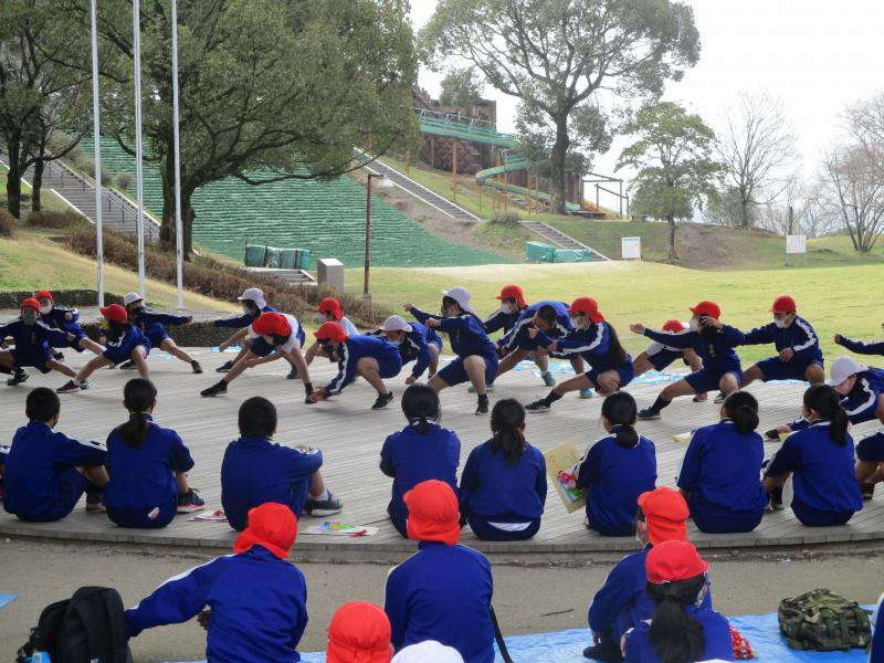3月5日(金)に送別遠足が行われました。早朝までの雷雨も登校時にはすっかりあがり、関係の先生方の努力で何とか遠足ができました。新運営委員の進行のもとお別れ集会が行われ、各学年から6年生に向けた言葉や出し物が発表され、プレゼントもありました。卒業する6年生からも、クイズや出し物、各学年への言葉、リコーダーの演奏等が披露され、温かく和やかな雰囲気で集会を終えました。