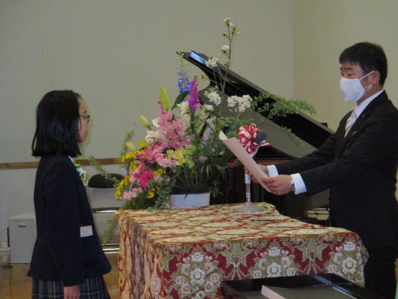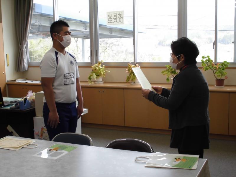賞状を受け取る永田くん 表彰を受ける古田さん