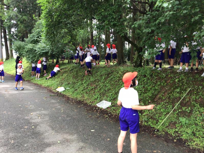 梅ちぎり中の1、2年生 去年の経験を生かして梅を取る2年生
