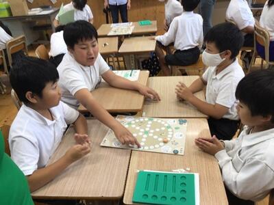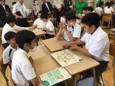 5月28日(火)に歴史学習の一環として、奈良時代に大流行したボードゲーム「かりうち」を、奈良文化財研究所の方に教えていただきながら楽しく活動しました。子どもたちは「かりうち」で大盛り上がり。「かり」をふるたびに一喜一憂。とても楽しんでいました。体験の後は、「かりうち」が復活するまでの流れを教えていただきました。いろいろな発見をつなげていくことで、この現代に「かりうち」が再現されたということだそうです。歴史のロマンを感じますね。