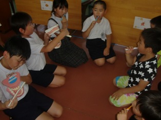 保健委員会の子どもたちが、委員会活動の時間に栗の実保育園を訪問しました。年長児を対象にむし歯予防の劇をし、歯磨き体操の曲に合わせてブラッシング指導をおこないました。保育園の子どもたちも、小学校のお兄さんお姉さんの話をしっかりと聞いてくれました。栗の実保育園の子どもたちと先生方には大変お世話になりました。これからも菊鹿町の保育園と連携した取組をすすめていきたいと思います。
