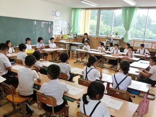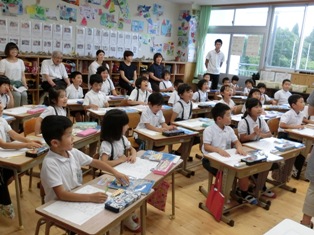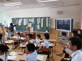 菊鹿町の3つの保育園と菊鹿中学校の先生が、3年と5年1組の授業を見にこられました。保育園からすれは送り出した子どもたちの成長した姿、中学校からすれば数年後に入学してくる子どもたちの姿を共有することで、保育園、小学校、中学校とあがる段階でスムーズなつなぎを行い、一貫した教育を進めることができます。その成果が子どもたちの姿に現れ、参観に来られた先生方からたくさん褒めていただきました。保護者の皆様、地域の方々の協力のもと3園、1小、1中がしっかりと連携して子どもたちの成長を支えていきたいと思います。