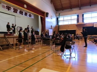 午後から学習発表会を開催しました。オープニングの音楽部の演奏のあと、学年毎に本年度の学習の成果を発表しました。どの学年も大きな声で元気よく、劇や歌、スライド、クイズ、実演など様々な方法で発表し、学習の成果とともに子どもたちの成長を感じました。これも、保護者、地域の方々のおかげだと深く感謝申し上げます。発表会後は、学級懇談会を行い、こちらも多数のご出席をいただきありがとうございました。残りの写真は行事アルバムに掲載します。
