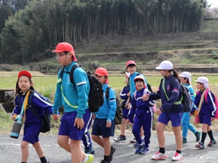 その後、5年生を先頭に、最後は1年と6年が手をつないで学校を出発しました。鷹取ではアーチを作って6年生を迎え、その後縦割り班で昼食を食べました。天候にも恵まれ、自然の中で思いっきり遊んでいました。みんなにとって思い出に残るお別れ遠足になったことと思います。残りの写真は行事アルバムに掲載します。