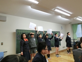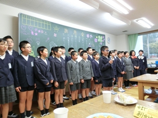 6年生が職員に対し感謝の気持ちを込めて謝恩会を開いてくれました。5,6時間目に家庭科室でサンドウィッチ+一品+飲み物を作り、その後図工室で謝恩会を行いました。最初に6年生全員で「ありがとう」を歌い、会食、ゲーム、感謝状贈呈がありました。食べ物にしても、ゲームにしても、感謝状にしてもすべてに子どもたちの成長とともに温かい素直な気持ちが感じられとてもいい謝恩会となりました。残りの写真は行事アルバムに掲載します。