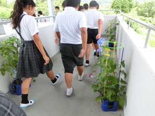 1年生が日頃お世話になっている6年生を招待して朝顔祭りを開催しました。1年生はグループ毎に、金魚すくいやお面やさん、射的、ヨーヨーつりなどの場所を作り、そこを、6年生が遊びながら回りました。1年生も6年生も、どちらも笑顔がいっぱいの朝顔祭りでした。残りの写真は行事アルバムに掲載します。