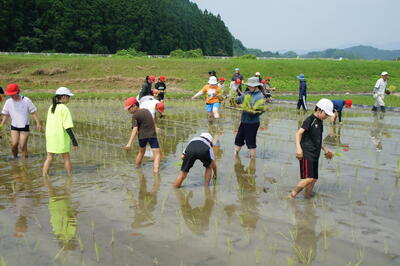5年生が地域の方々のご協力のもと、田植えの体験学習を行いました。