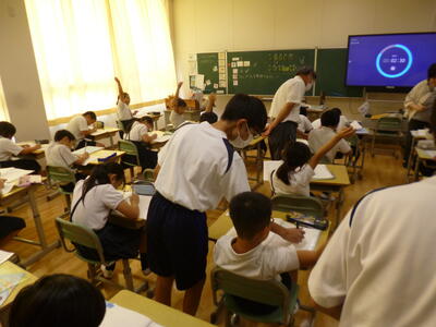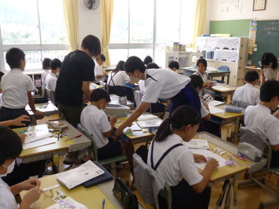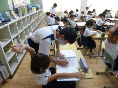 9月2日(火)から3日間、中学2年生が本校で職場体験をしています。各教室に入って、子どもたちの学習を支援してくれています。
