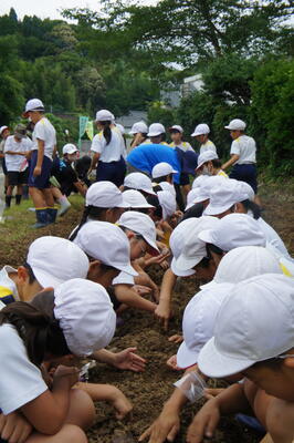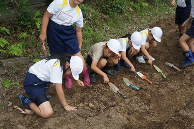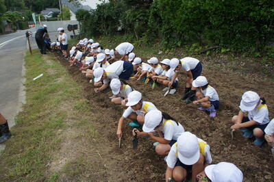 3年生が、大豆の種を学校西門横の畑に播きました。芽が出てくるのを楽しみに待ちたいと思っています。