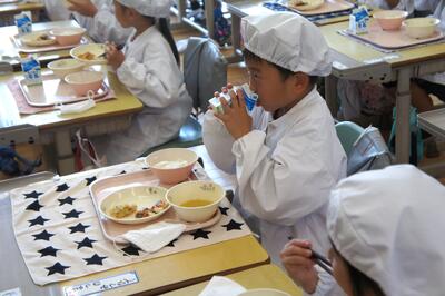 9月から、給食の牛乳がストローレスになりました。みんな上手に飲んでいました。