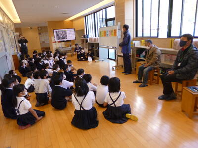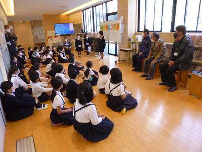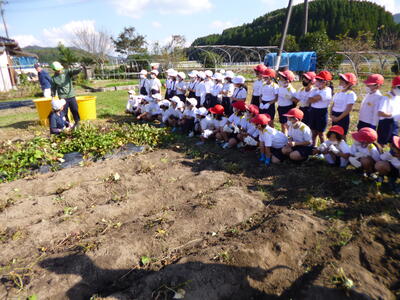 2年生の学習のために、芋畑の準備から管理、芋苗植えや芋掘りのお手伝いをいただいた地域の方々へ感謝の思いを伝えるための「ありがとうの会」を行いました。協力いただいた方へ感謝の手紙と収穫した芋を手渡し、最後に歌のプレゼントをしました。本当にありがとうございました。