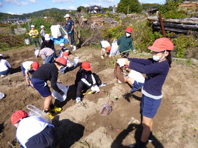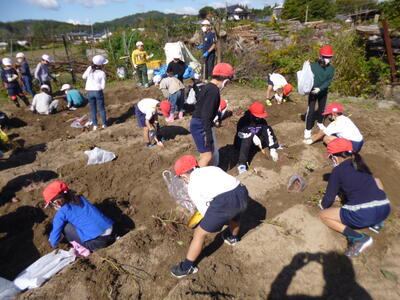 いよいよ本日が、いもほりの本番です。たくさんのいもを収穫でき、2年生も大喜びでした。畑を提供していただいた地域の方や、苗植えから畑の管理、芋掘りの準備に至るまで、協力いただいた地域の皆様に感謝です。ありがとうございました。