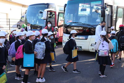 11月7日(月)、3年生が見学旅行に出かけました。見学先は、有明防災館と水本オレンジガーデンでした。