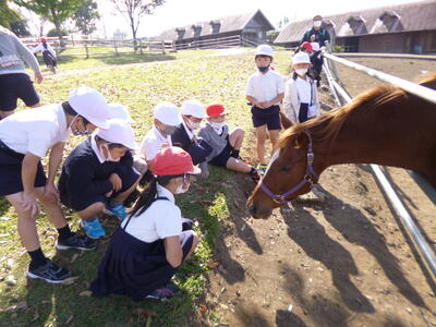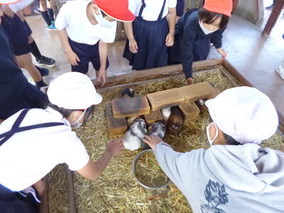 今日は2年生の見学旅行でした。見学地は、阿蘇ミルク牧場です。牧場内を見学したり、動物と触れあったりしました。また、羊のレースを見学し、見事1着と2着の予想を的中させ、商品をゲットした児童もいました。最後にアイスクリーム作りを体験し、みんなでおいしくいただきました。