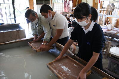 今日は6年1組が紙漉き体験を行いました。明日が6年2組です。自分の卒業証書を自分でつくる取り組みです。初めて紙漉きを体験する児童も多く、苦労しながらもがんばって紙漉きを行っていました。