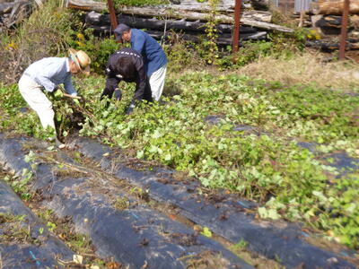 10月25日(火)は、2年生のいもほりです。前日の今日は、地域の方にご協力いただき、その準備を行いました。