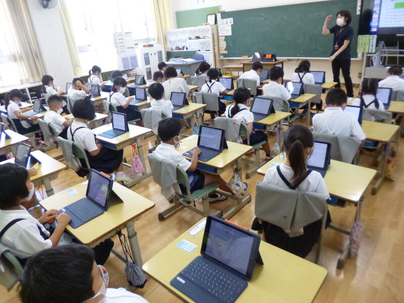 今日は、1年生がタブレットの使い方についての学習をしました。私が初めてパソコンをさわったのは、大学生の時だったと思いますが、今は小学1年生からタブレットを操作する時代なのですね。時代は、本当に急速に変化していると感じます。