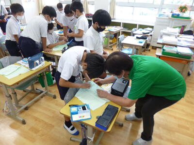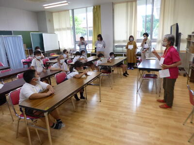 5年生の家庭科の授業で手縫いの学習を行いました。地域の婦人会の方々にご協力いただき教えていただきました。上手にできるようになったでしょうか。