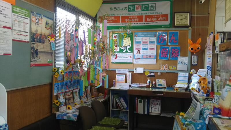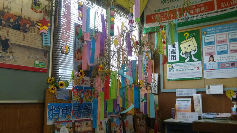 川沿郵便局の七夕飾りに、本校の子供たちが願いごとを書いた短冊が飾られています。今日は天の川が見られるでしょうか。