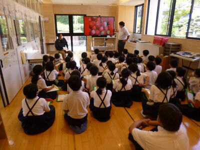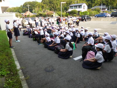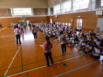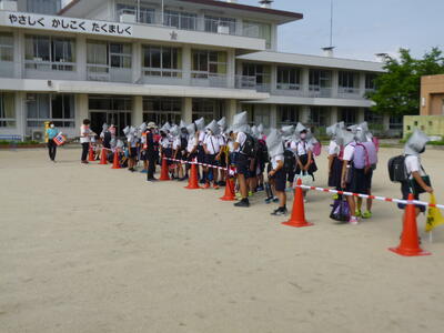 7月12日(火)、震度7の大地震が発生したとの想定で、引き渡し訓練を実施しました。地震発生想定時刻から子供たちを避難させ、地区ごとに整列させ人数を確認し、保護者に引き渡しができるようになるまで、やはり30分ほどかかりました。今回の訓練で様々な課題も見えましたので、今後に生かしていきます。保護者の皆様、ご協力ありがとうございました。