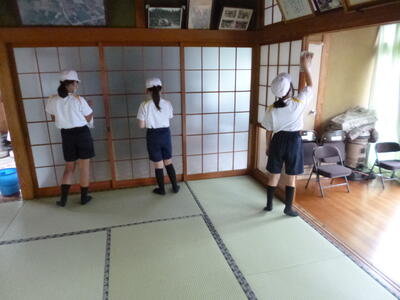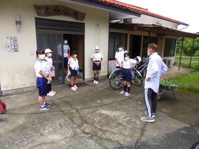夏休みの初日、小各地域の各地域の清掃ボランティアを行いました。中学生のリーダーの指示で公民館や地域の神社等の清掃活動を行いました。私が担当した地区の区長さんも大変感謝されていました。