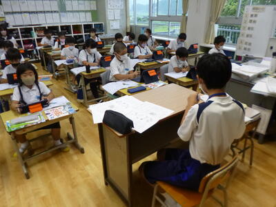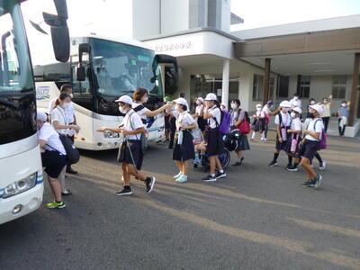 9月9日(金)~10日(土)の1泊2日で、5年生の集団宿泊教室が行われます。写真は出発式の様子です。熊本県環境センターで学習したあと、あしきた青少年の家で宿泊をします。現地でしか学べない貴重な学習や体験の機会です。有意義な時間を過ごしてきてほしいと願っています。