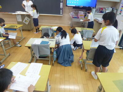 今日は、朝の時間を利用して縦割り班活動の「かなくりタイム」を実施しました。みんな楽しそうに活動していました。