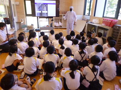 3年生が大豆の学習を進めていますが、今日はいつもご指導いただいている丸美屋の福永さんに来校いただき、授業をしていただきました。南関町と和水町の納豆工場と豆腐工場について詳しく教えていただくことができました。お客様に安全・安心な商品を届けるために、様々な努力をされていることがよく分かりました。