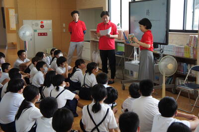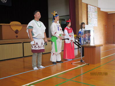 7月21日(金)から、夏休みに入ります。前日の20日(木)の3時間目に夏休み前集会を行いました。集会終了後には、古墳祭キャラバン隊から古墳祭のPRをしていただきました。