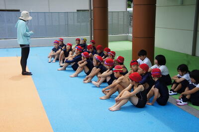 6月12日(月)3時間目に2年1組、5時間目に2年2組のプール開きでした。