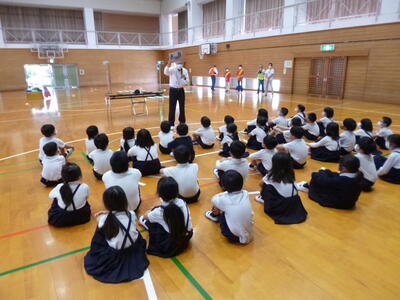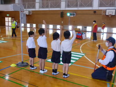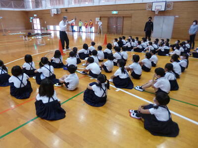 今日は、1、2年生対象の交通安全教室を行いました。交通安全協会の指導員の方や役場総務課の方、江田駐在所、交通安全母の会など、多くの方に指導していただきました。横断歩道のわたり方など、しっかり練習しました。