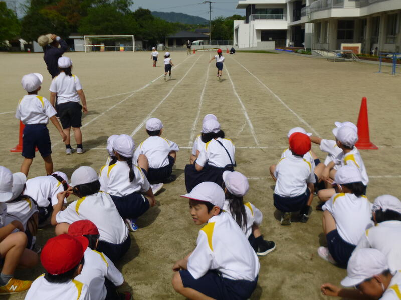 4月16日、2時間目の2年生体育の授業です。一生懸命走っていました。