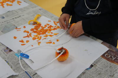 地域の方からたくさんの渋柿をいただきましたので、干し柿づくりを行いました。