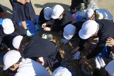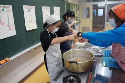 3年生が、自分たちで育てた大豆を収穫し、丸美屋さんのご協力・ご指導を受けながら、とうふづくりにチャレンジしました。みんなできたてのとうふをおいしそうに食べていました。