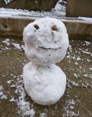 1月24日(水)は、積雪や道路凍結のため、スクールバス運行の安全確保のため2時間の遅延登校となりました。しかし、子どもたちは寒さに負けず、積もった雪に大喜びでした。学校には、いたるところに雪だるまができていました。