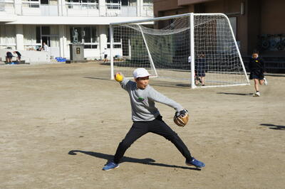 大谷翔平選手から寄贈されたグローブで、子どもたちは昼休みにキャッチボールを楽しんでいます。