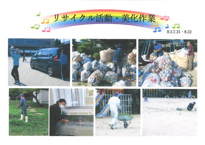 また、8月22日(日)には、PTA美化作業がありました。手洗い場の清掃、花壇の草取り、飼育小屋近辺、運動場内の除草作業と、朝から作業をしていただきました。ありがとうございました。
