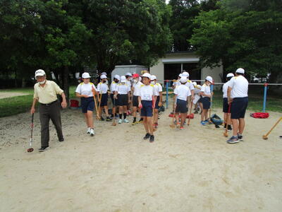 今日は、本年度の第1回目のクラブ活動がありました。「グラウンドゴルフ」「史跡探索」「絵手紙」「囲碁」「琴」「大正琴」「太鼓」「陶芸」の8つのクラブ活動に4年生以上の児童が参加します。