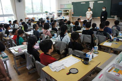 今日は、(株)丸美屋さんから講師の先生をお招きして、3年生が大豆の勉強をしました。大豆からできる豆腐や納豆について詳しく教えていただきました。大豆博士になった3年生です。