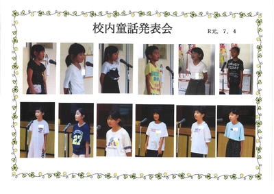 校内童話発表会が、低学年と高学年に分かれてありました。代表の子どもたちは、間の取り方、感情の込め方など、様々な工夫を凝らしていました。聞いている私たちも、お話の内容が頭に浮かんでくるようでした。