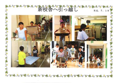 7月19日に、夏休み前集会を行いました。各学年代表児童が、前期前半の振り返り、前期後半に向けた目標などを発表しました。そして午後からは、いよいよ新校舎への引っ越し!教室にある机やいす、様々な荷物を新しい教室へ運び入れました。