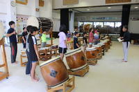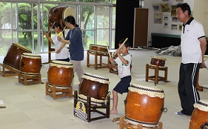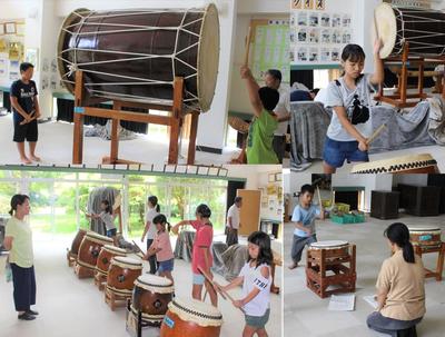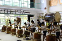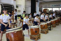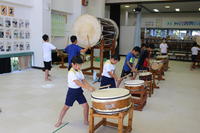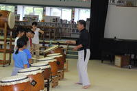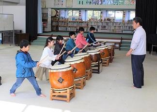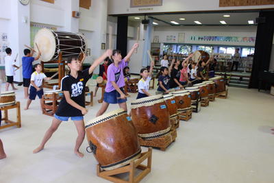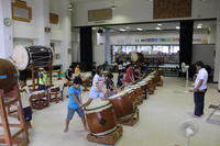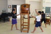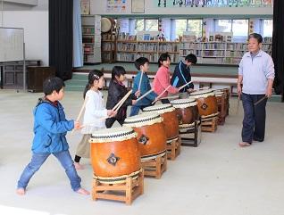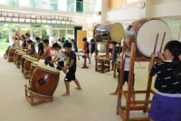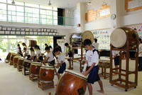 4,5,6年と3年に分かれて船山太鼓の練習をしました。(6月20日)