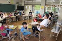 7月18日(木)、PTA母親部主催で給食試食会を実施しました。午前中は給食料理場を視察しました。給食では、各学年の教室に入り、子どもたちと会食をしました。子ども達もいつもより落ち着いて、しかも和やかな雰囲気で食事ができました。