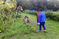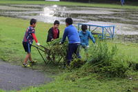 8月25日、親子美化作業を実施しました。天気をとても心配しましたが、作業中は何とか天気ももってくれ、暑くもなく最高の天気の中実施できました。子どもたちの仕事は、花壇の草取り。低学年のこどもたちは、自分の背丈より大きくなった草を「うんとこしょ」「どっこいしょ」といいながら協力してとりました。高学年のこどもたちは、花壇の草取りのあと、草を集めたり運んだりを頑張りました。
