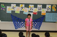 7月1日(月)に七夕お話会を実施しました。たなばたの歌を歌った後、各学年の童話発表代表者が、発表してくれました。今年初めて代表になった人も、昨年に引き続き代表になった人もいましたが、それぞれが昨年よりかなり上手になっており、この一年間の成長が伺えました。
